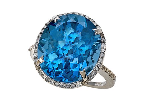 Genuine Blue Topaz Ring by Effy Collection® crafted in 14 kt White Gold Dimensions: Height: 10.00 mm Width: 16.50 mm Length: 18.00 mm1 Stone 14.73 Carats Blue Topaz Color: Blue Clarity: Clean, 0.31 Carats Round Diamonds Color: I Clarity: SI Metal weight may vary with finger size and metal choice. FREE LIFETIME WARRANTY, GIFT BAG AND GIFT CARD! Finejewelers Style Number: 520172.