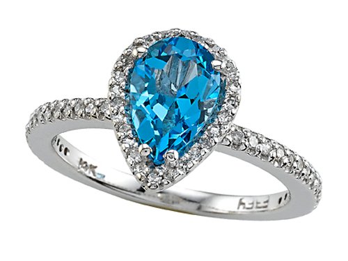 Genuine Blue Topaz Ring by Effy Collection® crafted in 14 kt White Gold 58 Stones 0.26 Carats Round Diamonds Color: I Clarity: SI, 1 Stone 1.42 Carats Blue Topaz Color: Medium to Dark Blue Clarity: Eye Clean Metal weight may vary with finger size and metal choice. FREE LIFETIME WARRANTY, GIFT BAG AND GIFT CARD! Finejewelers Style Number: 520081.