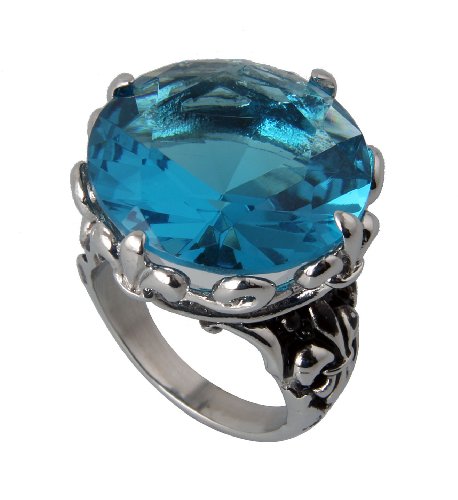 Cheap Antique Design Stainless Steel Cocktail Ring with Blue Topaz CZ Review