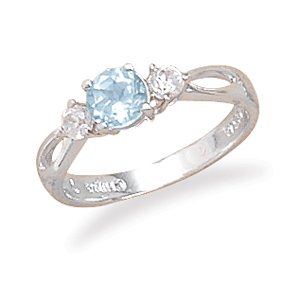 | Cleversilver's Rhodium Plated 3mm Cz/. mm Blue Topaz Ring- |