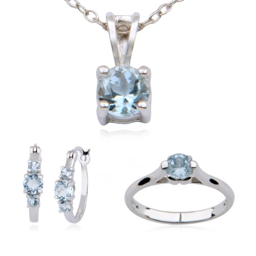 Cheap Sterling Silver Rhodium Plated Sterling Silver Genuine Blue Topaz Pendant, 18", Hoop Earring, and Ring Set Review