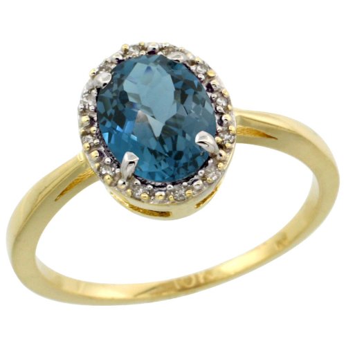 Cheap 10k Gold ( 8x6 mm ) Halo Engagement London Blue Topaz Ring w/ 0.04 Carat Brilliant Cut Diamonds & 1.35 Carats Oval Cut Stone, 7/16 in. (11mm) wide, size 8 Review