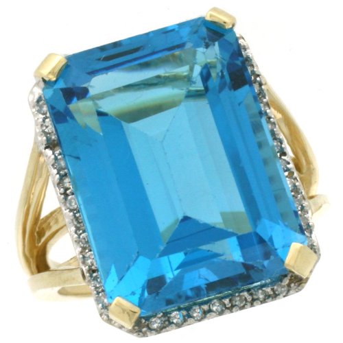 Cheap 14k Gold ( 18x13 mm ) Large Stone Engagement Swiss Blue Topaz Ring w/ 0.123 Carat Brilliant Cut Diamonds & 23.50 Carats Emerald Cut Stone, 13/16 in. (20mm) wide Review