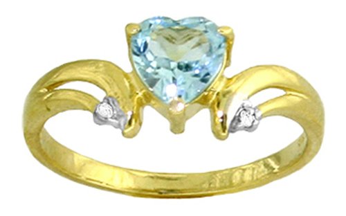 Cheap 14k Solid Gold Blue Topaz Heart Ring with Diamond Accents - Size 7 Review