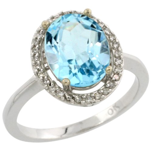 Cheap 14k White Gold ( 10x8 mm ) Halo Engagement Sky Blue Topaz Ring w/ 0.098 Carat Brilliant Cut Diamonds & 3.10 Carats Oval Cut Stone, 1/2 in. (13mm) wide, size 9 Review
