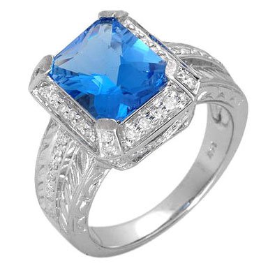 "14k White Gold 3.57 Cttw Blue Topaz & Real Diamond Ring" Overview