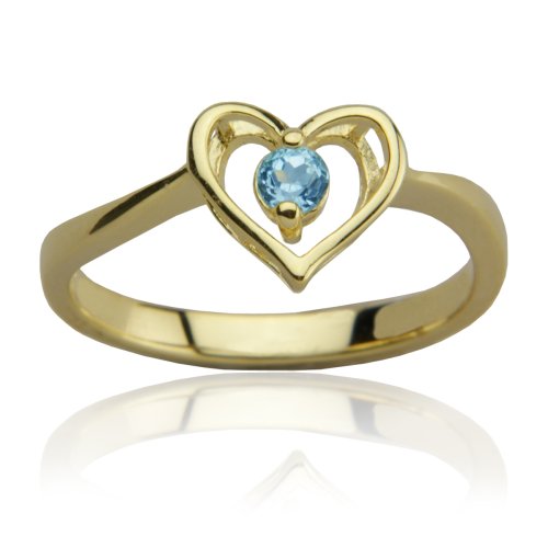 Cheap 18k Gold Plated Sterling Silver 3mm Blue Topaz Heart Ring Review