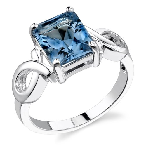 "Sterling Silver 3.75 cts Radiant Cut London Blue Topaz Ring Size 8" Overview