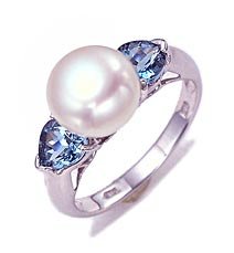 "10k Cultured Pearl and Blue Topaz Ring" Overview