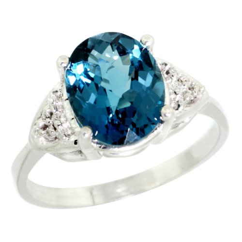 Cheap 10k White Gold ( 10x8 mm ) Halo Engagement London Blue Topaz Ring w/ 0.035 Carat Brilliant Cut Diamonds & 3.10 Carats Oval Cut Stone, 3/8 in. (10mm) wide Review