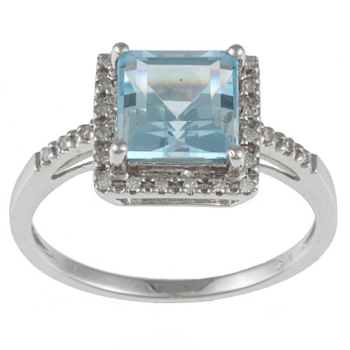 Cheap 10k White Gold Square Blue Topaz and Diamond Ring (1/10 TDW) Review