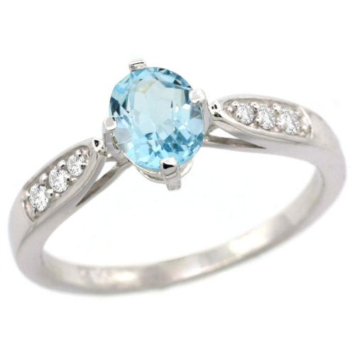 Cheap 14k White Gold ( 7x5 mm ) Stone Engagement Sky Blue Topaz Ring w/ 0.19 Carat Brilliant Cut Diamonds & 1.10 Carats Oval Cut Stone, 5/16 in. (8mm) wide Review