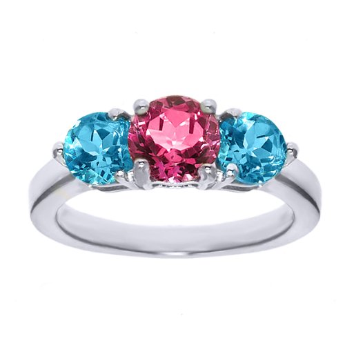 "2.00 Ct 3-Stone Pink Blue Topaz Sterling Silver Ring" Overview