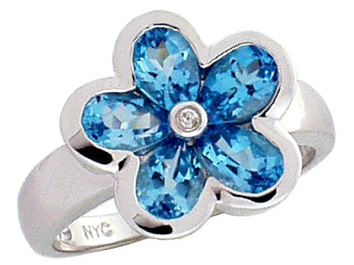 Genuine Blue Topaz Ring crafted in 14 kt White Gold 5 Stones 2.75 Carats Oval Blue Topaz 6x4mm. Color: Medium to Dark Blue Clarity: Eye Clean, 1 Stone 0.01 Carats Round Diamonds Color: I Clarity: SI1 - SI2 Metal weight may vary with finger size and metal choice. FREE LIFETIME WARRANTY, GIFT BAG AND GIFT CARD! Finejewelers Style Number: 23349.