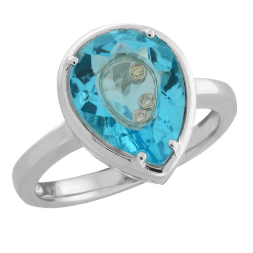 Cheap 3 Genuine Diamonds Floating In 12X9MM Blue Topaz Ring Discount Review Shop