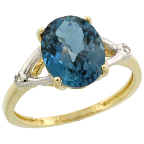 Cheap 10k Gold ( 10x8 mm ) Oval London Blue Topaz Stone Ring w/ 0.007 Carat Brilliant Cut Diamonds & 3.10 Carats Oval Cut Stone, 3/8 in. (10mm) wide, size 8 Review
