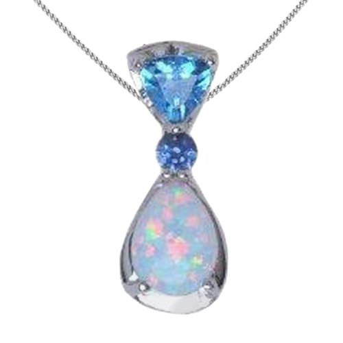 Cheap 14k White Gold Created Opal, Swiss Blue Topaz and Blue Sapphire Teardrop Pendant, 17" Review