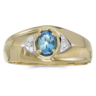 Cheap 14K Yellow/White Gold 0.02 ct. Diamond and 6 x 4 MM Oval Shaped Blue Topaz Men's Ring Review