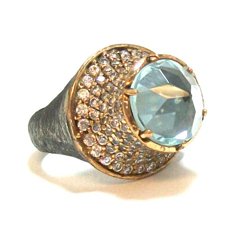 Cheap NEW MARKDOWNS! Turkish Design Oxidized Sterling Silver .925 and Bronze Faceted Blue Topaz Dome Ring with CZ Accents by Bora Size 7 Review