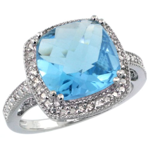 Cheap Sterling Silver Vintage Style Square Blue Topaz Stone Ring w/ 0.08 Carat Brilliant Cut Diamonds & 6.00 Carats (10mm) Cushion Cut Gemstone (Available in Sizes 5 to 10), size 6 Review