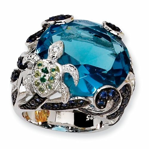 Cheap Sterling Silver Cubic Zirconia & Simulated Blue Topaz Turtle Ring (Size 6) Review