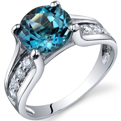 Gemstones: 1 piece Genuine London Blue Topaz, Round Cut, 8 mm diameter, 2.25 carats total gem weight, Caribbean Blue Hue with Brilliant Sparkle. Side Stones: 10 pieces Super Sparkling Machine Cut White Cubic Zirconia Ring: 3.10 grams, Pure Sterling Silver with .925 stamp, Ring features exceptional Design, Craftsmanship and Rhodium finishing. Perfect gift for Mothers Day, Birthdays, Valentines Day, Graduation, Christmas or just about any other occasion. Money Back Guarantee. Includes a Signature Gift Box & Free SHIPPING, style 10234